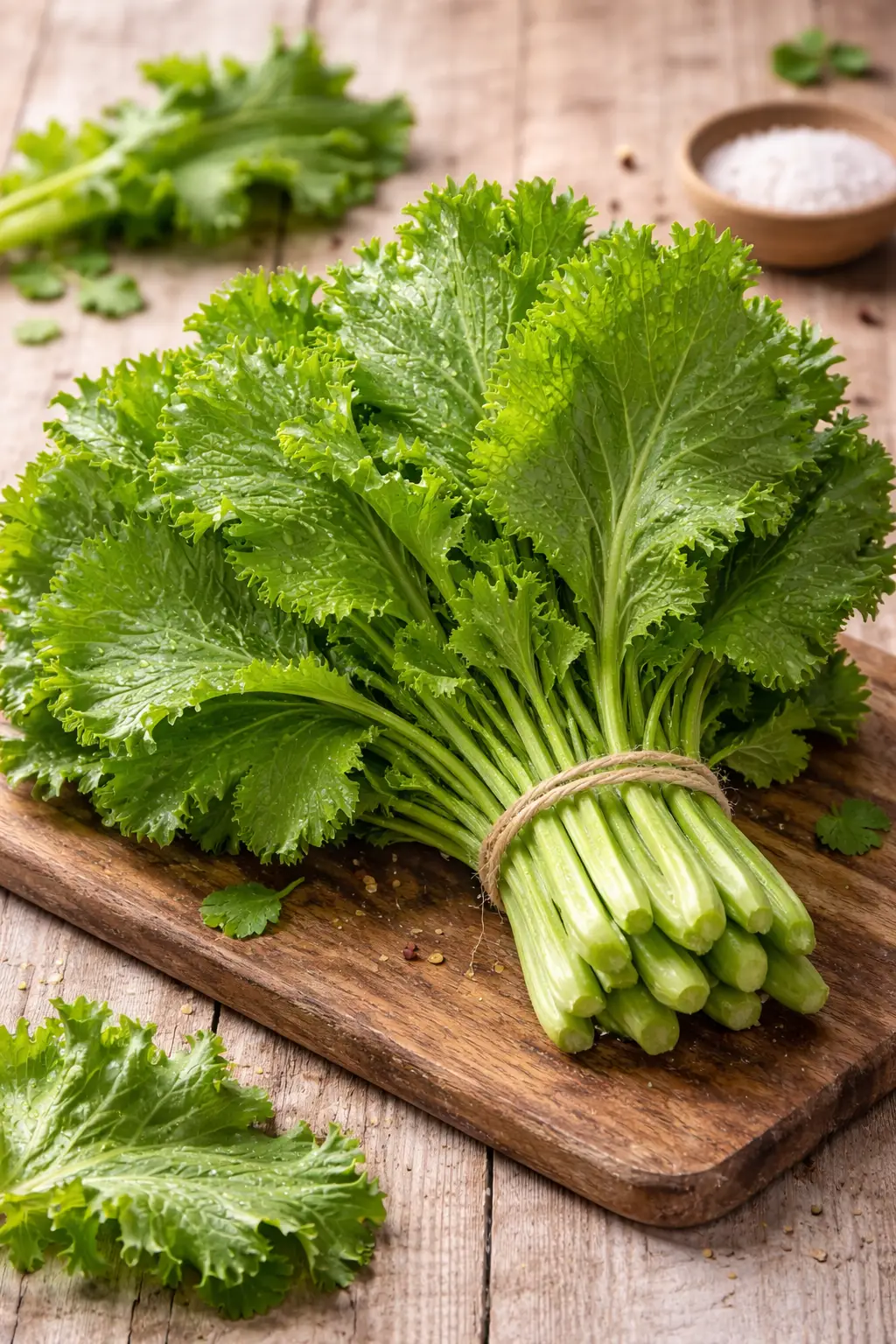 Mustard greens are leafy green vegetables known for their slightly spicy and peppery flavor. 🌿